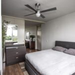 Entree, hal, heerlijke ruime en lichte woonkamer met veel privacy. De grote raampartijen geven vrij uitzicht op een prachtig natuurgebied. Via een schuifdeur bereik je de eerste slaapkamer aan de achterzijde van het appartement. De hal, voorzien van een modern toilet, kast met stadsverwarming en meterkast, geeft ook toegang tot de tweede slaapkamer aan de voorzijde. Beide slaapkamers bieden ruimschoots plek voor een tweepersoonsbed en kastenwand.