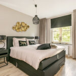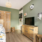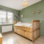 De royale vierde slaapkamer met dakkapel is heerlijk licht en perfect als tienerkamer of thuiskantoor. Dankzij de knieschotten is er extra bergruimte aanwezig.