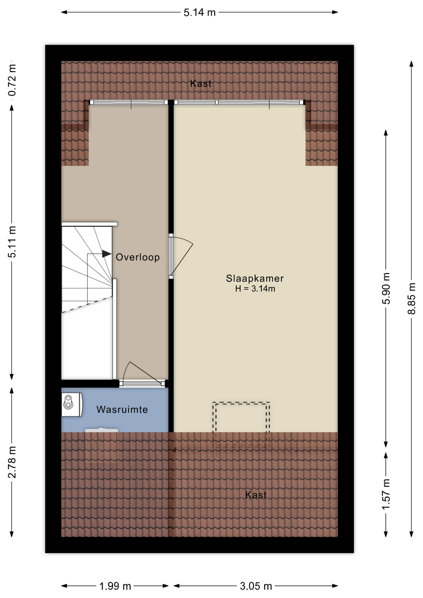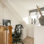 De tweede verdieping biedt verrassend veel extra ruimte. Op de voorzolder bevindt zich een afgesloten en netjes afgewerkt washok met aansluitingen voor wasmachine en droger en de CV-installatie. Daarnaast is hier een praktische werk- of studieplek gecreëerd.