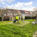 The sunny southeast-facing backyard is well maintained and easy to oversee — perfect for young children. There is ample space for a play area, trampoline, or cozy seating area. The wooden storage shed with electricity provides practical storage for bicycles and toys. Via the back entrance, you reach a quiet inner courtyard with plenty of parking and a charming playground, where children can safely play with neighborhood friends.