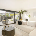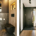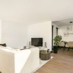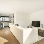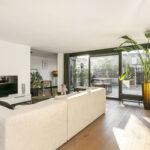 Je stapt de hal binnen waar de vernieuwde toiletruimte en de strakke stalen deur alvast een voorproefje geven van wat er komen gaat. Zodra je de woonkamer binnenloopt, valt het licht je tegemoet. De heerlijke L-vormige living, waarin een deel van de garage is opgenomen, biedt volop plek voor zowel een royale zithoek bij de sfeervolle gashaard als een extra hoek voor ontspanning of speelruimte. De houten vloer en het vrije zicht op de tuin maken deze ruimte helemaal af. Dankzij de schuifpui loopt binnen bijna vanzelf over in buiten.