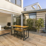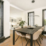 Aangrenzend aan de woonkamer bevindt zich een bijzonder fijne verrassing: een apart eetgedeelte in de voormalige garage. Hier dineer je met gemak uitgebreid met vrienden of familie. Via een doorloop bereik je vervolgens de volledig geïsoleerde werkruimte (ook akoestisch gedempt!), voorzien van PVC vloer en airco. Een ideale plek voor thuiswerken, muziek maken of een hobbyruimte, rustig, én afgesloten van het woongedeelte.
