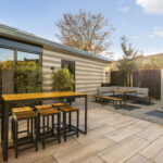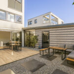 Buiten wacht een onderhoudsvriendelijke, twee jaar geleden volledig vernieuwde achtertuin met fraaie sierbestrating en een praktische achterom. Een heerlijke plek om te genieten van lange avonden buiten.