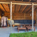 Achterin de tuin staat een stoere, houten veranda waaronder het in alle rust heerlijk genieten is!