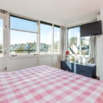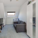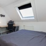 Door het realiseren van een uitbouw aan de voorzijde van de woning is er een zeer ruime en heerlijke lichte zolderkamer gecreëerd. Deze kamer is voorzien van een laminaatvloer en gestucte wanden, CV-kast en toegang tot het eigen balkon met fraai en vrij uitzicht over de woonomgeving.