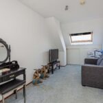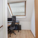 Via een vaste trap is de voorzolder bereikbaar, die is voorzien van een laminaatvloer, gestucte wanden, Velux-dakraam, bergruimte en een werk-/studeerplek.