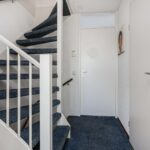 Overloop met vloerbedekking, gestucte wanden en trapopgang.