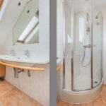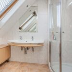 Daarnaast beschikt de 2e verdieping over een extra badkamer, die modern is afgewerkt en uitgerust is met een douchecabine met thermostaatkraan, dubbele wastafel, hangend closet en Velux-dakraam.