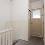 Bij binnenkomst arriveert u in een goed afgewerkte hal die middels een trap doorgang biedt naar de 1e verdieping. De trap is volledig bekleed, evenals de overloop op de 1e verdieping.