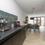 Aan de voorzijde van de woning is een strakke (2019) keuken met een graniet aanrechtblad en een Bora inductie kookplaat met geïntegreerde afzuiging. Geen nare kookluchtjes meer en geen lelijke afzuigkap. Verder is de keuken voorzien van goede apparatuur, te denken aan een quooker, combitron, oven, koelkast en vaatwasser en is deze mooi strak afgewerkt.