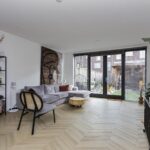 Begane grond: via de voortuin stap je binnen in de hal en daar kun je al meteen zien dat deze woning in perfecte staat is: prachtige stijlvolle vloer, mooie lambrisering en goed afgewerkte muren. In de hal bevindt de wc met staande toilet en fraai mozaïek en de meterkast. Vervolgens stap je de woonkamer in waar een moderne PVC vloer ligt in visgraat verband. Er is ook vloerverwarming aanwezig. De woonkamer is riant en open en heeft openslaande deuren naar de tuin. Recentelijk uitgebouwd (2019).