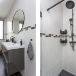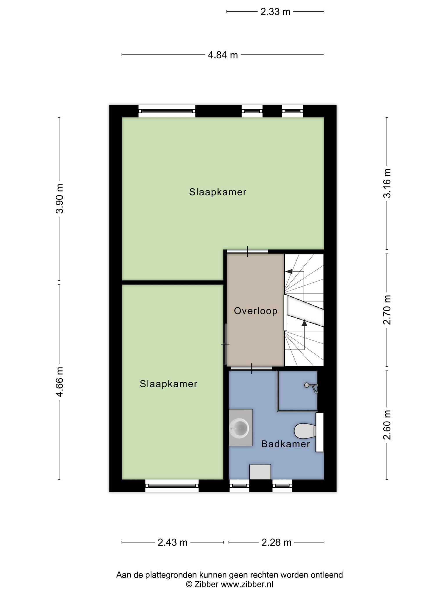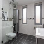 1e verdieping: twee ruime en lichte slaapkamers grenzend aan een grote overloop. De masterbedroom heeft uitzicht op de tuin en beschikt over een grote nis, waar de kast prima kan staan. De badkamer is netjes betegeld in natuurlijke grijstinten. Het heeft een inloopdouche, zwevend toilet en wastafelmeubel.