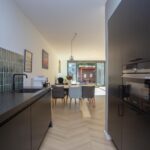Aan de voorzijde van de woning is een strakke (2019) keuken met een graniet aanrechtblad en een Bora inductie kookplaat met geïntegreerde afzuiging. Geen nare kookluchtjes meer en geen lelijke afzuigkap. Verder is de keuken voorzien van goede apparatuur, te denken aan een Quooker, combi oven/magnetron, koelkast en vaatwasser en is deze mooi strak afgewerkt.