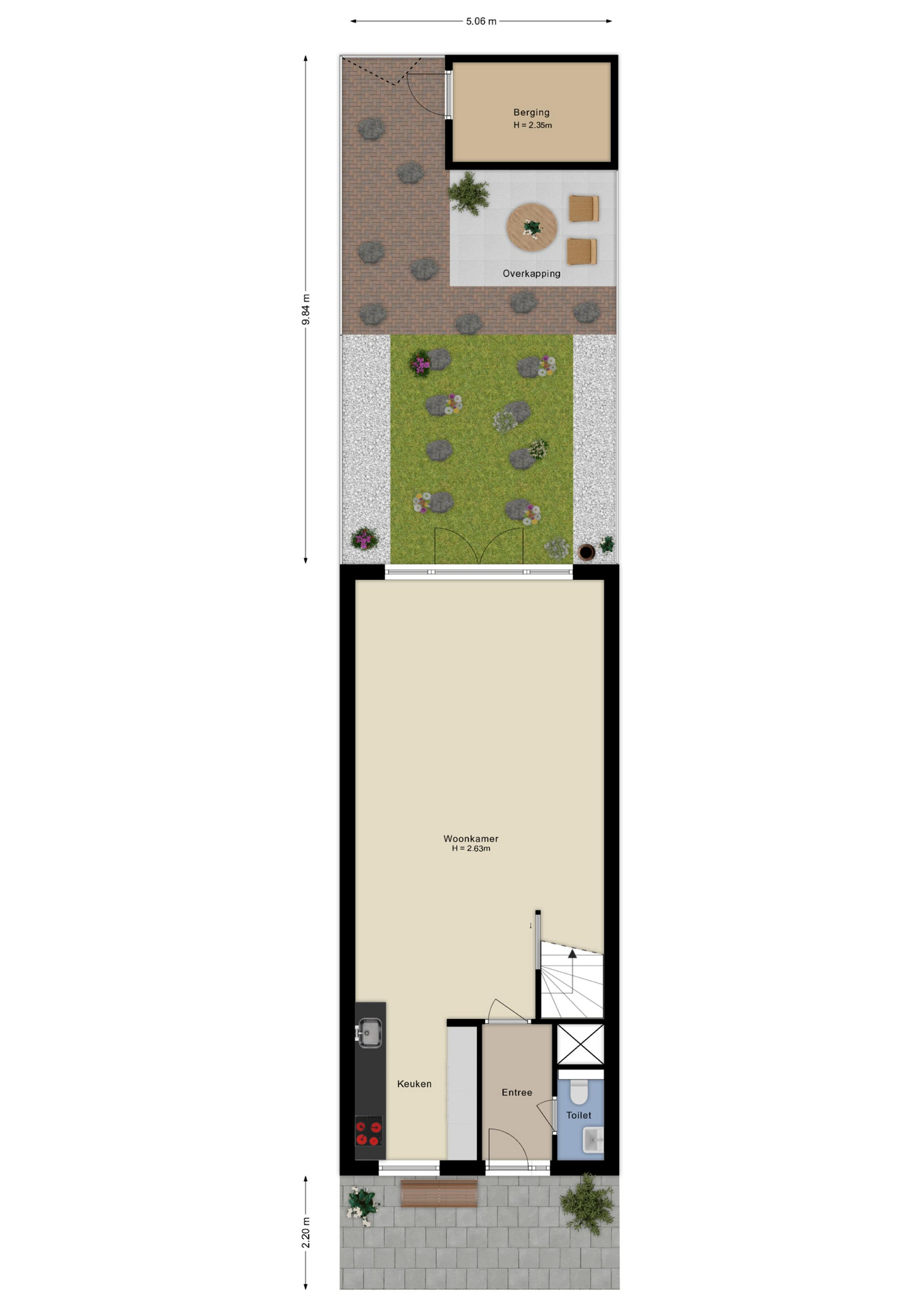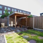 Buiten: aan de achterzijde van het huis is een onderhoudsvriendelijke knusse tuin met een houten veranda overkapping die uitnodigt tot veel avondjes lekker buiten vertoeven. De tuin is onderhoudsvriendelijk, deels betegeld/siergrind en deels gras. In deze tuin kun je heerlijk genieten van de ochtend- en middagzon, met een oostelijke ligging.