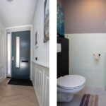 Begane grond: via de voortuin stap je binnen in de hal en daar kun je al meteen zien dat deze woning in perfecte staat is: prachtige stijlvolle vloer, mooie lambrisering en goed afgewerkte muren. In de hal bevindt de wc met staande toilet en fraai mozaïek en de meterkast. Vervolgens stap je de woonkamer in waar een moderne PVC vloer ligt in visgraat verband. Er is ook vloerverwarming aanwezig. De woonkamer is riant en open en heeft openslaande deuren naar de tuin. Recentelijk uitgebouwd (2019).
