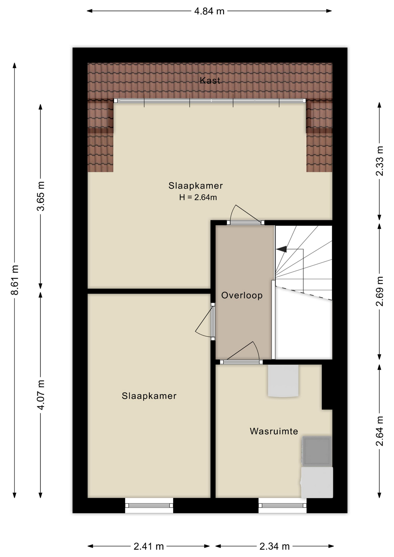 2e verdieping: ook hier 2 royale kamers mede dankzij de grote dakkapel die zich aan de achterzijde van de woning bevindt. Tevens is er een aparte wasruimte met witgoedaansluitingen die ook prima kan functioneren als (extra) werkruimte.