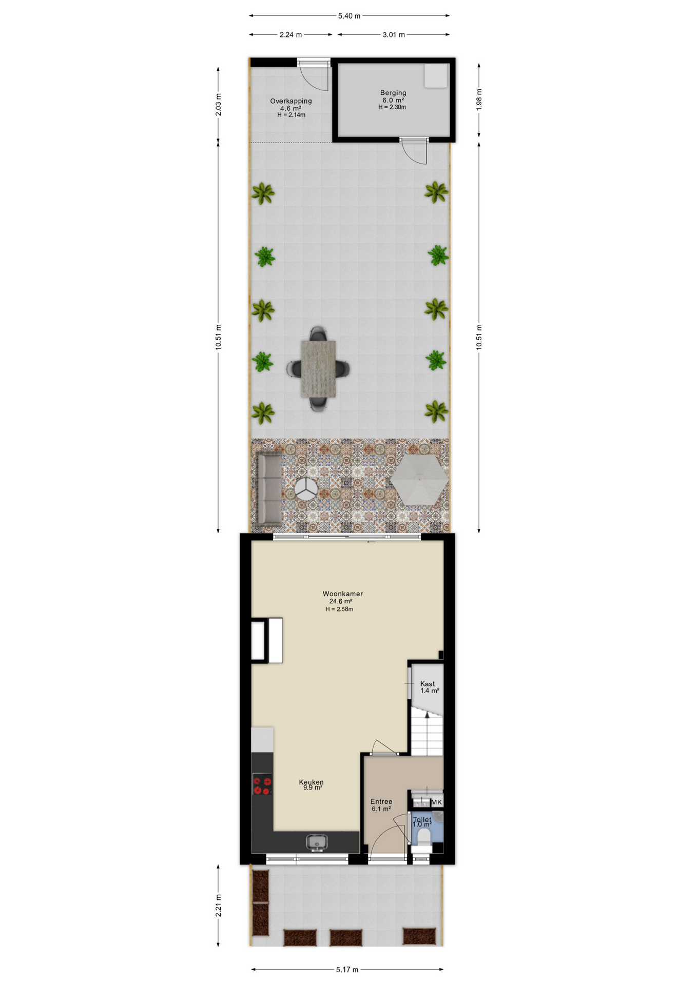 De tuin is bijna 11 meter diep, waardoor je hier altijd een plekje vindt om te genieten van de zon of lekker in de schaduw kunt zitten. Via de achterom heb je tenslotte direct toegang tot het achterpad en de groenvoorziening met speelplaats.