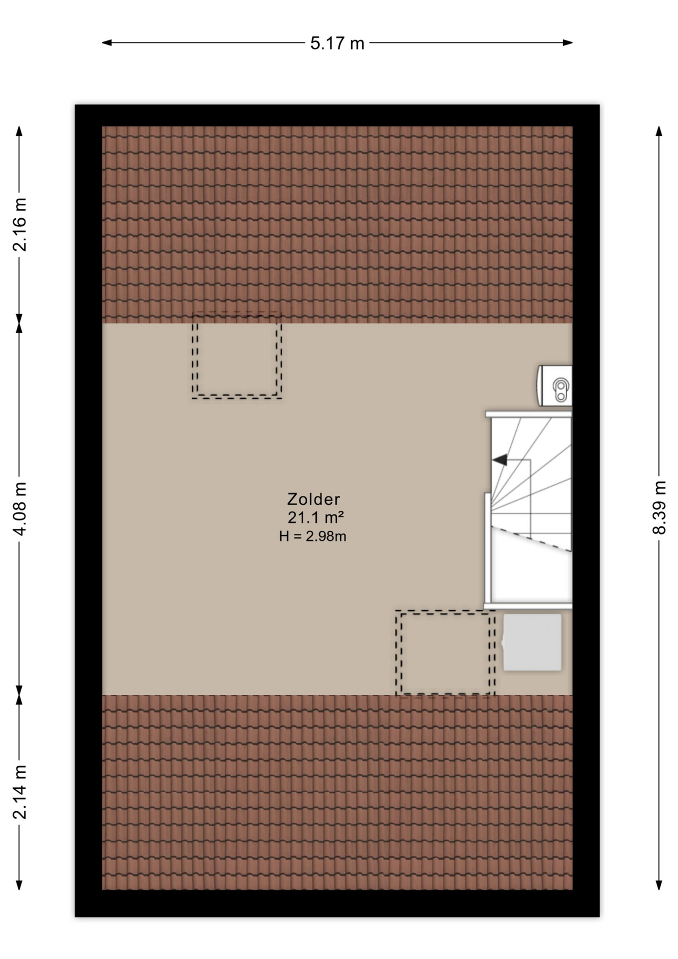 De zolderverdieping is thans voorzien van een vinylvloer, twee Velux-dakramen, CV-opstelling, wasmachineaansluiting en bergruimte.