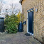 De verrassend ruime voortuin heeft een breedte van circa 12 meter en een diepte van ruim 5 meter en is modern en verzorgd aangelegd met sierbestrating en groene borders en heeft een houten schuur. Vanuit de tuin kijk je vrij uit over het ruim opgezette en autovrij woonerf met veel groen, een fietspad en waterpartij.