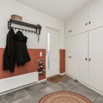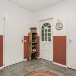 Entree, ruime hal met tegelvloer, gestucte wanden, brede en vaste kastenwand, meterkast modern afgewerkte toiletruimte met hangend closet en fonteintje en deur naar de grote inpandige berging, die is voorzien van de wasmachine- en drogeraansluiting en de CV-opstelling.
