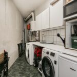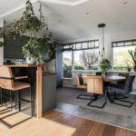 De ruime woonkeuken is aan de voorzijde van de woning gelegen en is voorzien van een in 2020 geplaatst, modern keukenblok in hoekopstelling met grote koelkast, inductie kookplaat, combimagnetron, vlakscherm afzuigkap, vaatwasser en veel werk- en kastruimte. Tevens tref je hier een leuke barretje aan, waaraan je heerlijk kunt eten of gezellig kunt borrelen.