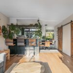 Via de tussenhal met de trapopgang en stoere houten schuifdeur zijn de woonkeuken en living toegankelijk.
