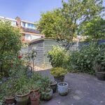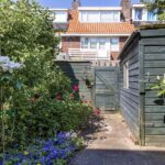 De achtertuin is diep en biedt veel privacy. Hier kunt u heerlijk genieten van de zon en de rust. De tuin is aangelegd met vaste beplanting, een houten schuur/berging en een achterom.