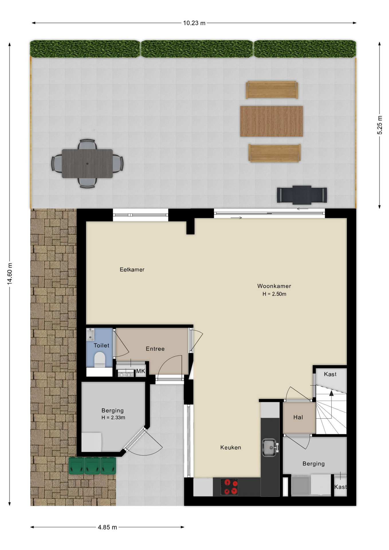 Aangebouwde stenen berging aan de voorzijde
