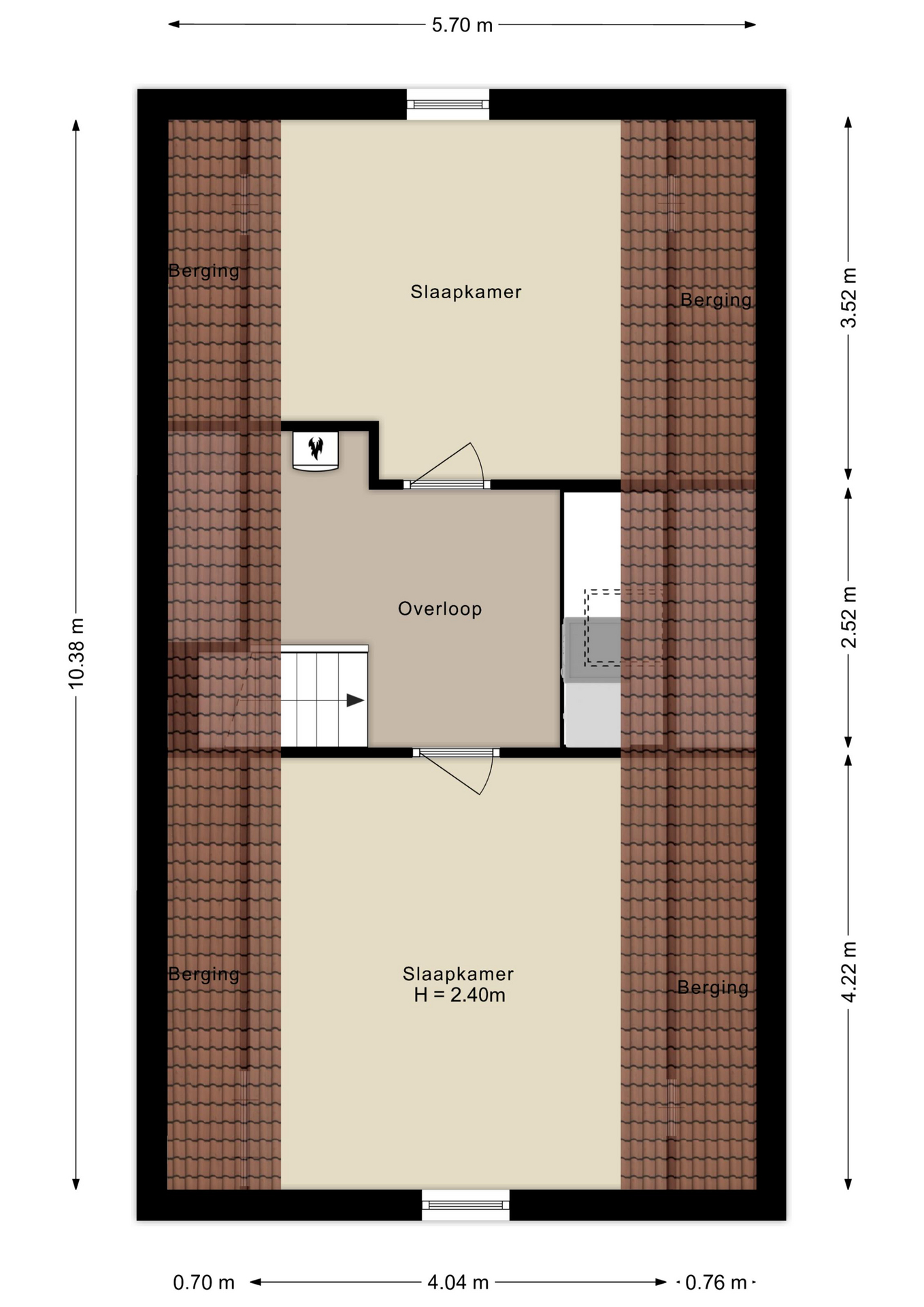 De woning is verdeeld over twee verdiepingen. Op de begane grond vind je de ruime woonkamer, keuken, bijkeuken, garage en een toilet. De voor- en achtertuin zijn eveneens ruim van opzet en verzorgd ingericht. De eerste verdieping biedt drie grote slaapkamers en de badkamer. Op de tweede verdieping zijn nog eens twee slaapkamers te vinden, die ook als kantoor of speelkamer gebruikt kunnen worden.