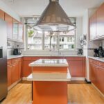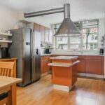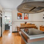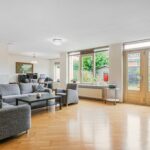 Aan de voorzijde ligt de dichte woonkeuken met een kookeiland en diverse inbouwapparatuur, waaronder een inductiekookplaat, afzuigkap, oven, combi-oven, losse koelkast, afwasmachine en een close-in boiler. Een fijne plek om uitgebreid te koken en gezellig te tafelen. De garage is bereikbaar via een roldeur.