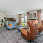 Aan het eind van de gang leidt een fraaie schuifdeur naar de woonkamer met open keuken. Grenzend aan de keuken bevindt zich een praktische pantry met opstelplaats voor witgoed en ruimte voor al uw voorraden.
