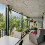 Het loggiabalkon is circa 12 m2 groot en biedt voldoende plaats voor een loungeset en tafel. Het balkon kijkt vrij uit over de noordkant van de stad en het groen voorbij de Zuilense Ring. Ook bij wat minder weer is het hier goed toeven, het balkon is namelijk overdekt en deels afgeschermd met glas.