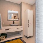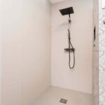 Aan de rechterzijde bevinden zich de moderne badkamer met wastafelmeubel en inloopdouche en de technische ruimte met MV en de stadverwarming met extra bergruimte.