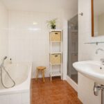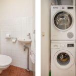 De ruime badkamer is praktisch ingedeeld en stijlvol afgewerkt, terwijl het separate toilet (met fonteintje) extra gebruiksgemak biedt. Verder is in de hal een inpandige berging aanwezig, voorzien van aansluitingen voor de wasmachine en droger, evenals extra opbergruimte.