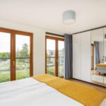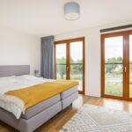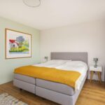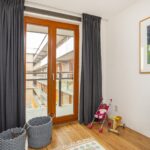 De eerste slaapkamer aan de voorzijde is compact en ideaal te gebruiken als werk-, kinder- of logeerkamer. De grote slaapkamer van maar liefst 16 m² aan de achterzijde biedt rust en comfort, met eveneens raampartijen van vloer tot plafond.