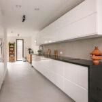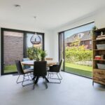 De luxe keuken is een droom voor elke kookliefhebber. Met een vijf meter lang werkblad en hoogwaardige inbouwapparatuur is dit de perfecte plek om culinaire hoogstandjes te creëren. De eetkamer, met openslaande deuren naar de zijtuin, biedt een ideale setting voor gezellige diners met familie en vrienden.