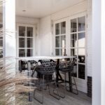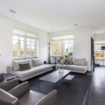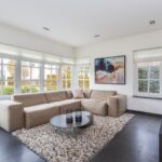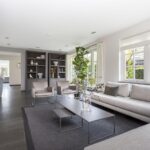 U betreedt de woning en maakt direct kennis met de prachtige plavuizenvloer van basalt in de ruime hal. Hier vindt u de trapopgang, het moderne toilet en openslaande deuren geven toegang naar de woonkamer. Bij binnenkomst in de royale woonkamer wordt u aangenaam verrast door het comfort en de grote hoeveelheid daglicht die via raampartijen aan drie verschillende zijden weet binnen te dringen. De afwerkingen zijn van een indrukwekkend niveau.