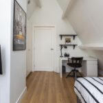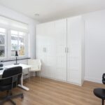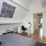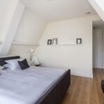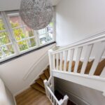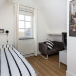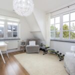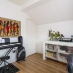 Via de stijlvolle houten trap bereikt u de tweede verdieping. De overloop geeft hier toegang tot nog twee slaapkamers en een technische ruimte met warmteterugwinsysteem. De slaapkamers zijn ruim en net als alle andere kamers in de woning heerlijk licht. Ook deze kamers zijn strak afgewerkt en voorzien van de fraaie laminaatvloer. Een hoge nok in beide kamers zorgt voor ruimtelijkheid.