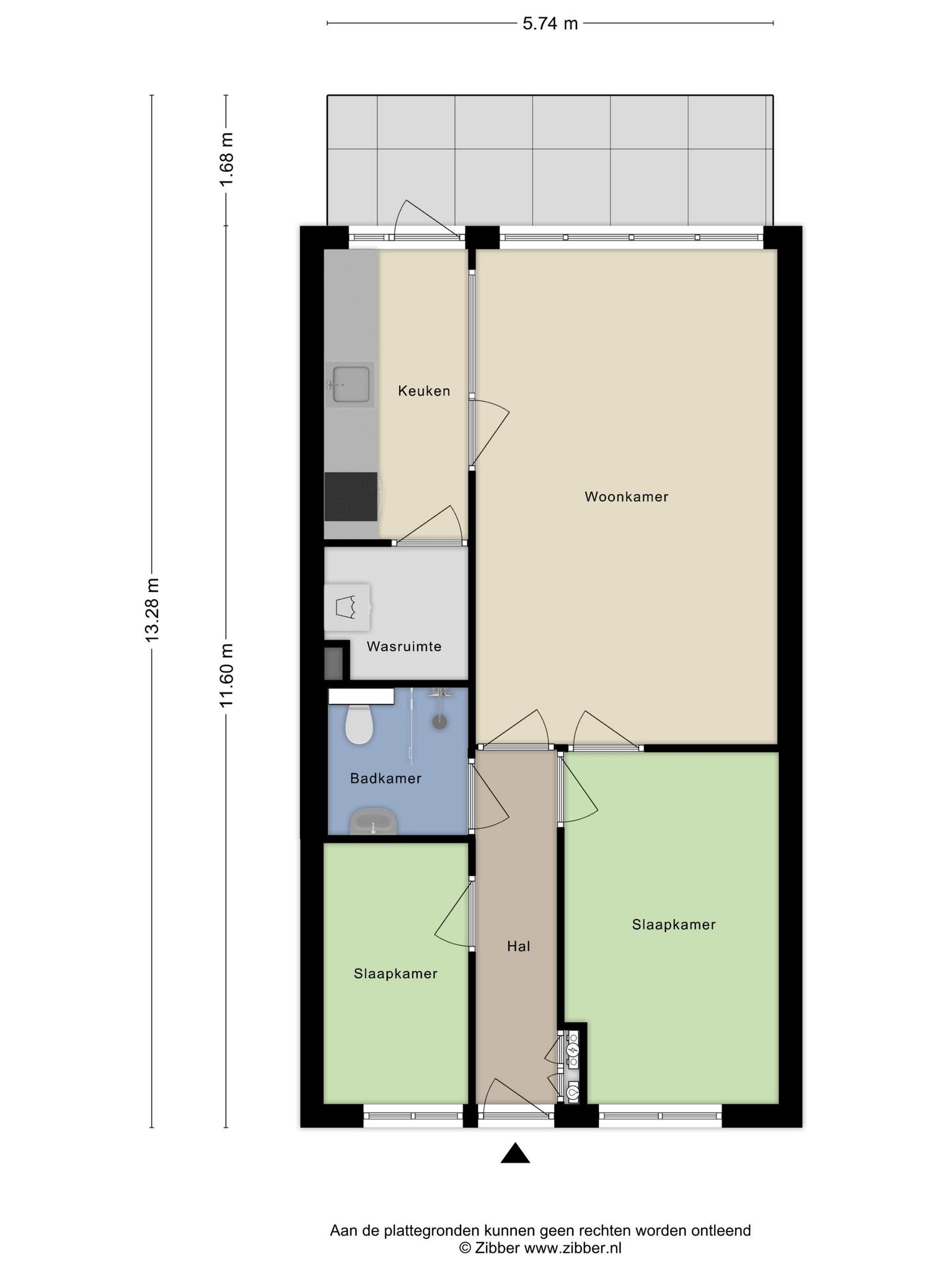 Eigen entree, hal met meterkast en toegang naar de keuken en de woonkamer. De woonkamer en keuken zijn aan de terraszijde gelegen. In de keuken is ook de CV-ketel opgehangen.