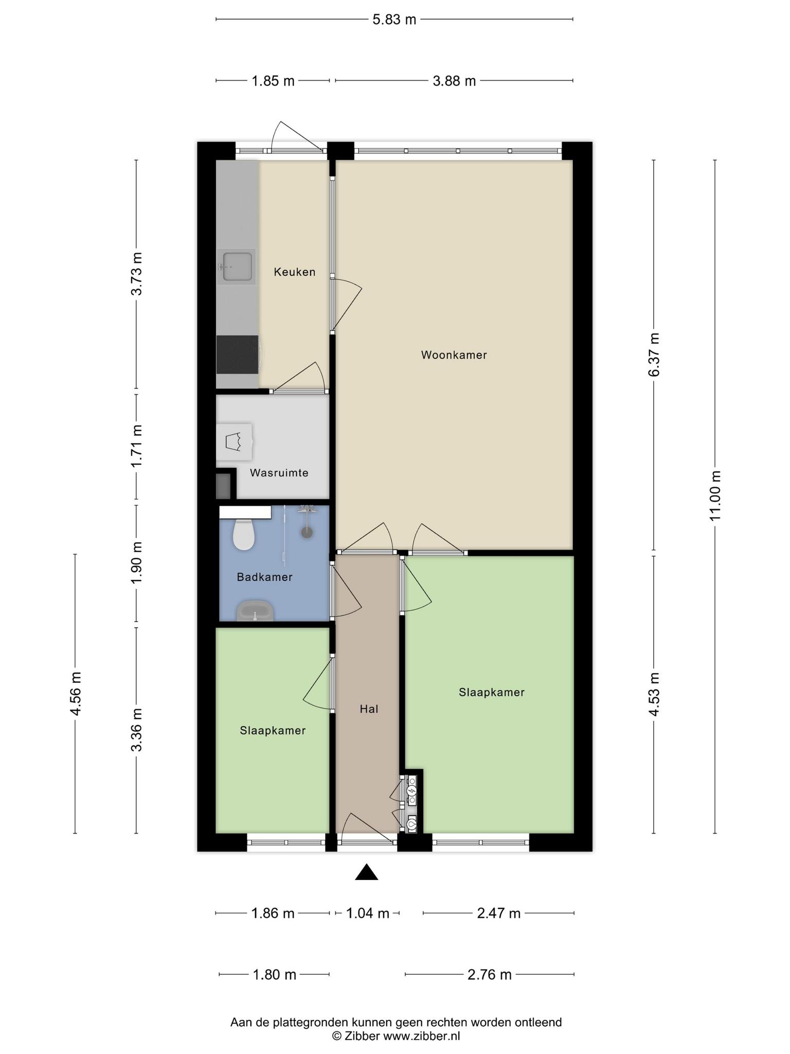Via de hal kun je naar de twee slaapkamers en de badkamer.