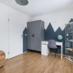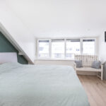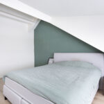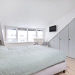 De verdieping beschikt daarnaast reeds over een royale master bedroom, die aan de achterzijde is gelegen en is voorzien van een laminaatvloer, glad gestucte wanden -en (hoog) plafond, dakkapel met kunststof kozijnen en HR++ beglazing en vaste kastenwand.