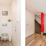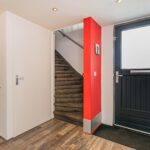 Entree, ruime hal voorzien van laminaatvloer, structuurverfwanden, moderne afgewerkte toiletruimte, nieuwe en uitgebreide meterkast, trapopgang, schuifdeur naar de slaapkamer en toegang tot de woonkamer.