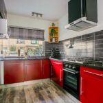 De halfopen keuken is aan de voorzijde van de woning gelegen en is voorzien van een groot keukenblok in hoekopstelling met composiet aanrechtblad, 5-pits gaskookplaat, oven en afzuigkap.