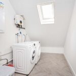 Via de trapopgang kom je op de ruime voorzolder, waar je naast veel bergruimte tevens de CV-combiketel (Intergas 2023) en de opstelplaats voor de wasmachine en droger aantreft.