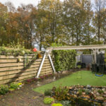 In de verzorgde voortuin staat een in kunststof uitgevoerde fietsenschuur en de zeer ruime en geheel vrij gelegen achtertuin is op het zuidoosten gelegen en fraai aangelegd met onder meer sierbestrating, kunstgras…