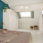 De zeer ruime zolderkamer is voorzien van houten vloerdelen, deels gestucte wanden, vaste kasten, airconditioning, Velux-dakraam aan de voorzijde en dakkapel aan de achterzijde met fraai en vrij uitzicht op het park en de singel.