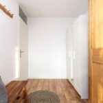 Hal met PVC-vloer met vloerverwarming en spuitwerkwanden, toiletruimte met closet en fonteintje, meterkast, garderobekast en trapopgang.