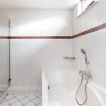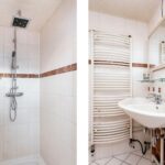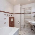 De royale badkamer is inpandig vergroot, geheel betegeld en voorzien van een tweepersoons-ligbad met thermostaatkraan, inloopdouche met glazen deur met regen-/handdouche en thermostaatkraan, dubbele wastafel, hangend closet, designradiator en verlaagd plafond met spots.