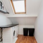 Via een vaste trap is de voorzolder bereikbaar, die is voorzien van een laminaatvloer, mechanische ventilatie-unit en een kleine bergvliering. De wasmachine- en drogeraansluiting en Vaillant VHR combiketel bevinden zich in een aparte was-/cv-kamer die tevens is voorzien van een Velux-raam.