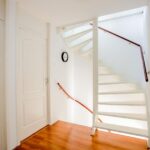 Overloop met laminaatvloer, gestucte wanden en trapopgang.